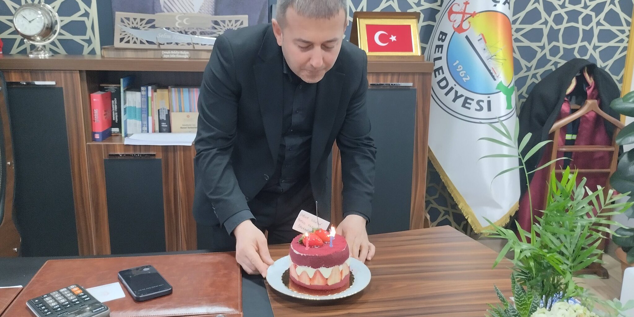 Belediyemiz Personeli, Belediye Başkanımız Sn. Selim Hamzaoğlu’nun doğum gününü kutlamak için makamında bir araya geldi. Samimi bir ortamda geçen kutlamaya Başkanımıza doğum günü pastası üfletilerek ikram edildi.